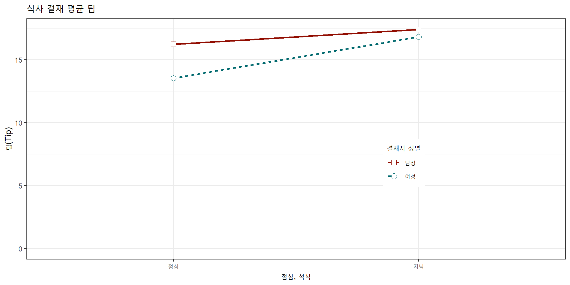 ggtitle("식사 결재 평균 팁") +